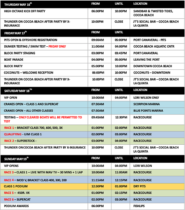 Major Sponsors for the event include Visit Space Coast. For tickets and more information visit: thunderoncocoabeach.com