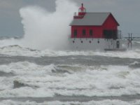 Went by the GH beach this evening. All waves were over the tall portion of the pier. Almost all of the rollers coming down the channel were over the railings. Solid 10's for that to happen. Some way out there looked huge. I would say 10-14's nothing that looked like 18'. They are steep and curling over a couple feet before they break. I would say most any boat would roll over if you took one from the side.